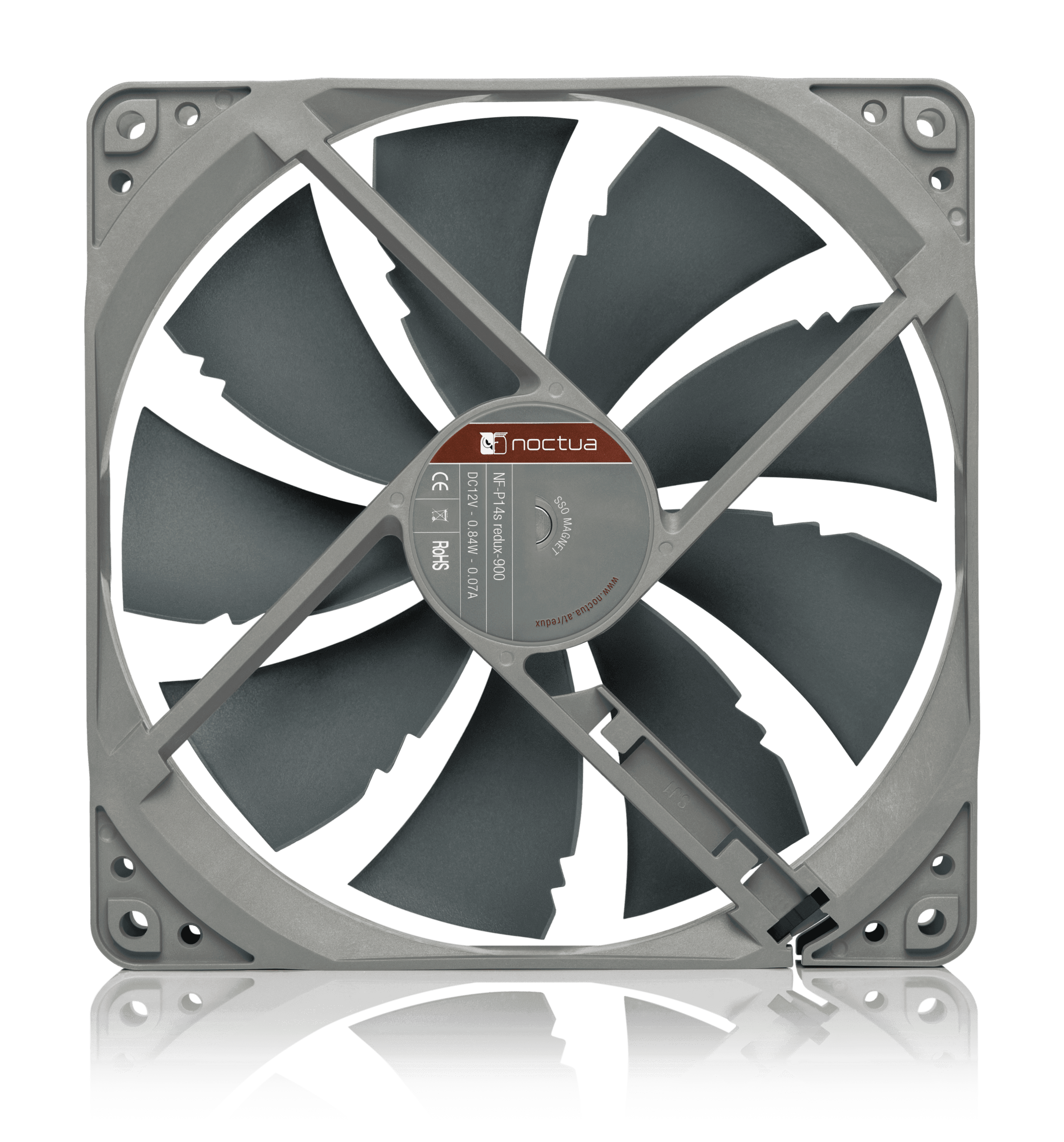 The square 140mm frame of the NF-P14s features standard 140mm mounting holes (124.5mm spacing), which makes it a premium grade replacement for common 140mm case fans and perfect for use on 140mm water cooling radiators, where its square shape will ensure full coverage and best pressure performance.