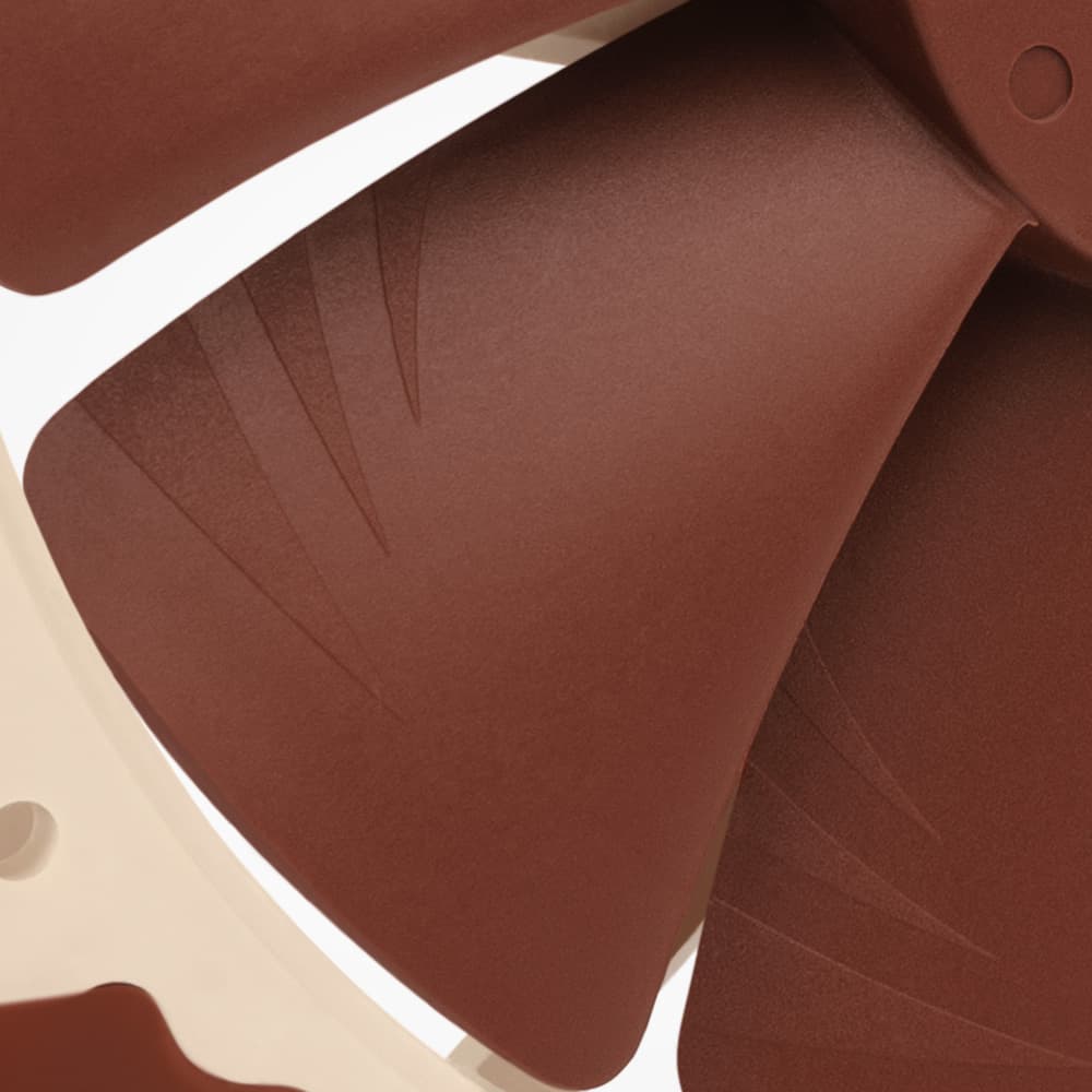 The NF-A20 impeller features suction side Flow Acceleration Channels. By speeding up the airflow at the crucial outer blade regions, this measure reduces suction side flow separation and thus leads to better efficiency and lower vortex noise.