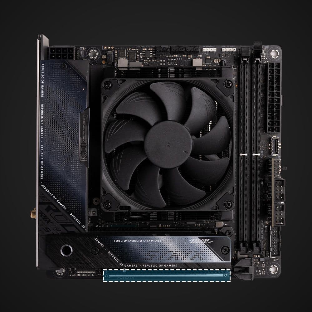 Some AMD-based mini-ITX motherboards have the PCIe slot located close to the CPU socket zone. While larger coolers that exceed this zone may block the PCIe slot, the compact-sized NH-L9a-AM5 provides full compatibility with PCIe cards.