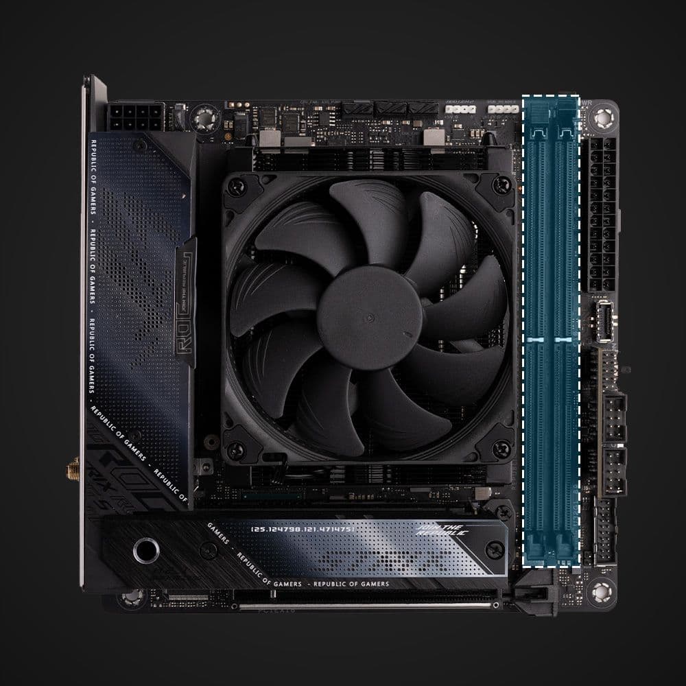 The NH-L9a-AM5 has a compact footprint that fully complies with the socket keep-out zones specified by AMD. This means that neither the heatsink nor the fan overhang the RAM, so the cooler provides easy access to the slots and is fully compatible with tall memory modules.