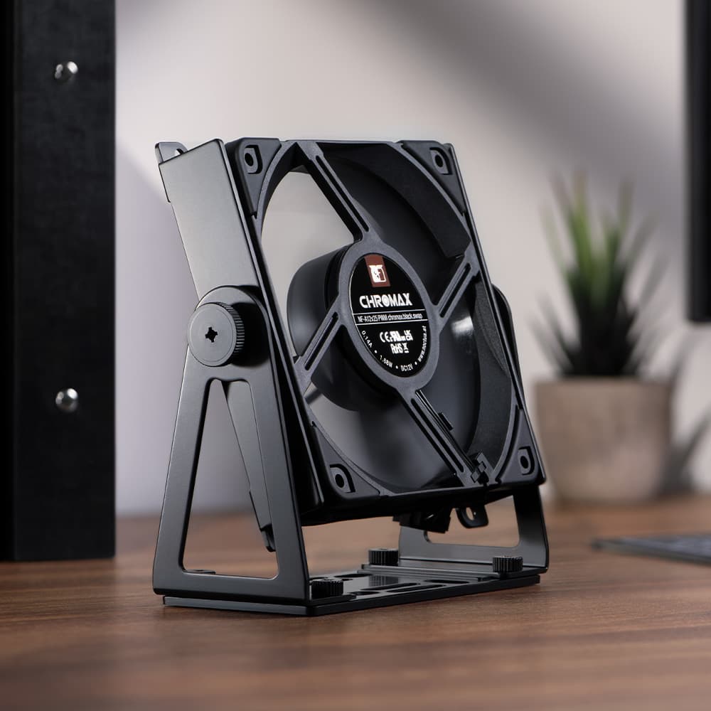 For applications that require a strong, focused beam of airflow, the NV-FM1 can be paired with the NF-A12x25 fan and the tailored NV-AA1-12 airflow amplifier that significantly enhances the fan’s ventilation performance. Perfect for creating strong yet ultra-quiet desk fans or to blow air across a larger room!