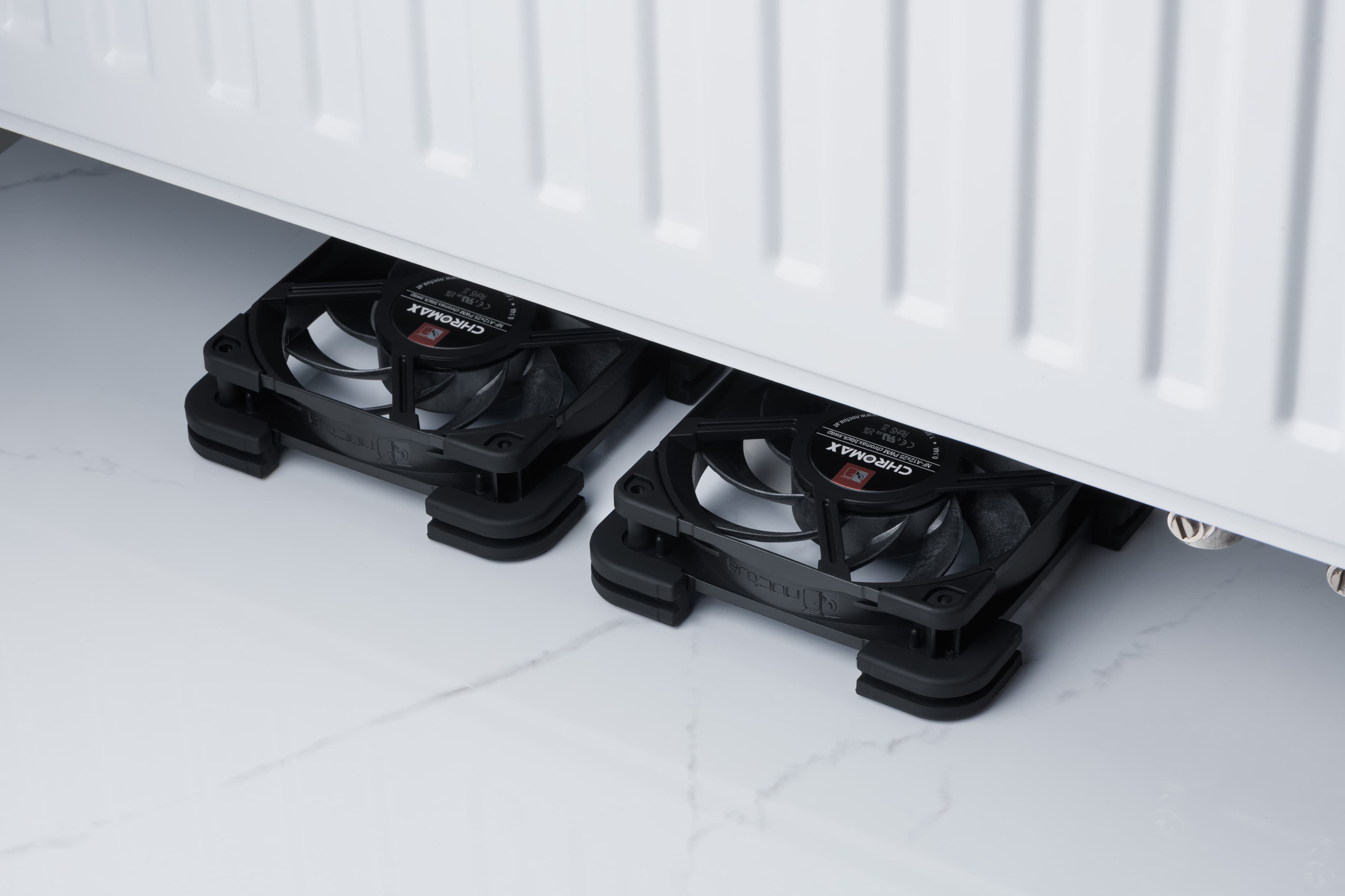 When installing fans underneath devices, it is crucial that the fan can draw in sufficient air. The NV-MPP1 introduce an offset of 10mm between the fan and the base surface, which allows the fan to draw in plenty of air from the sides in order to achieve optimal cooling performance.