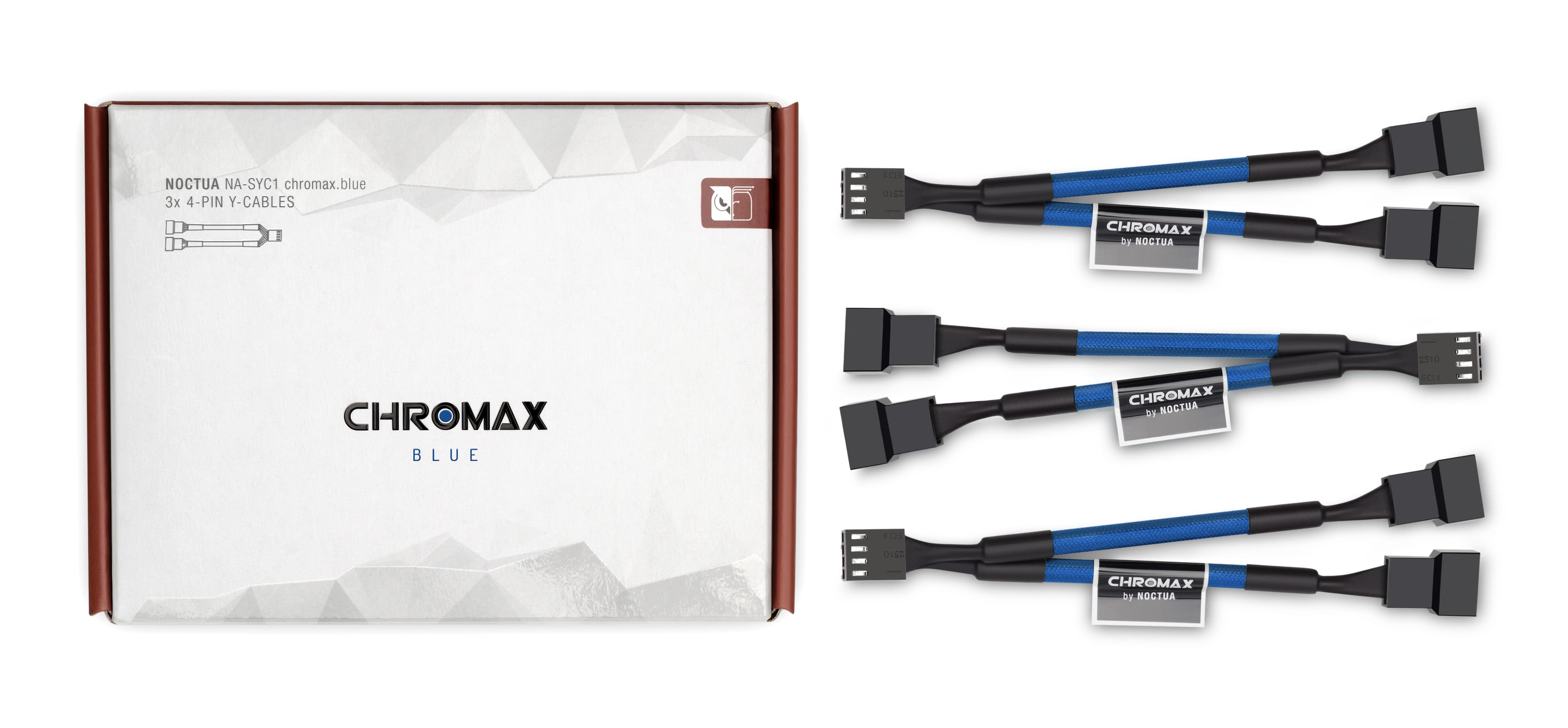 Set of three blue Y-Cables: for running two fans on one fan header.