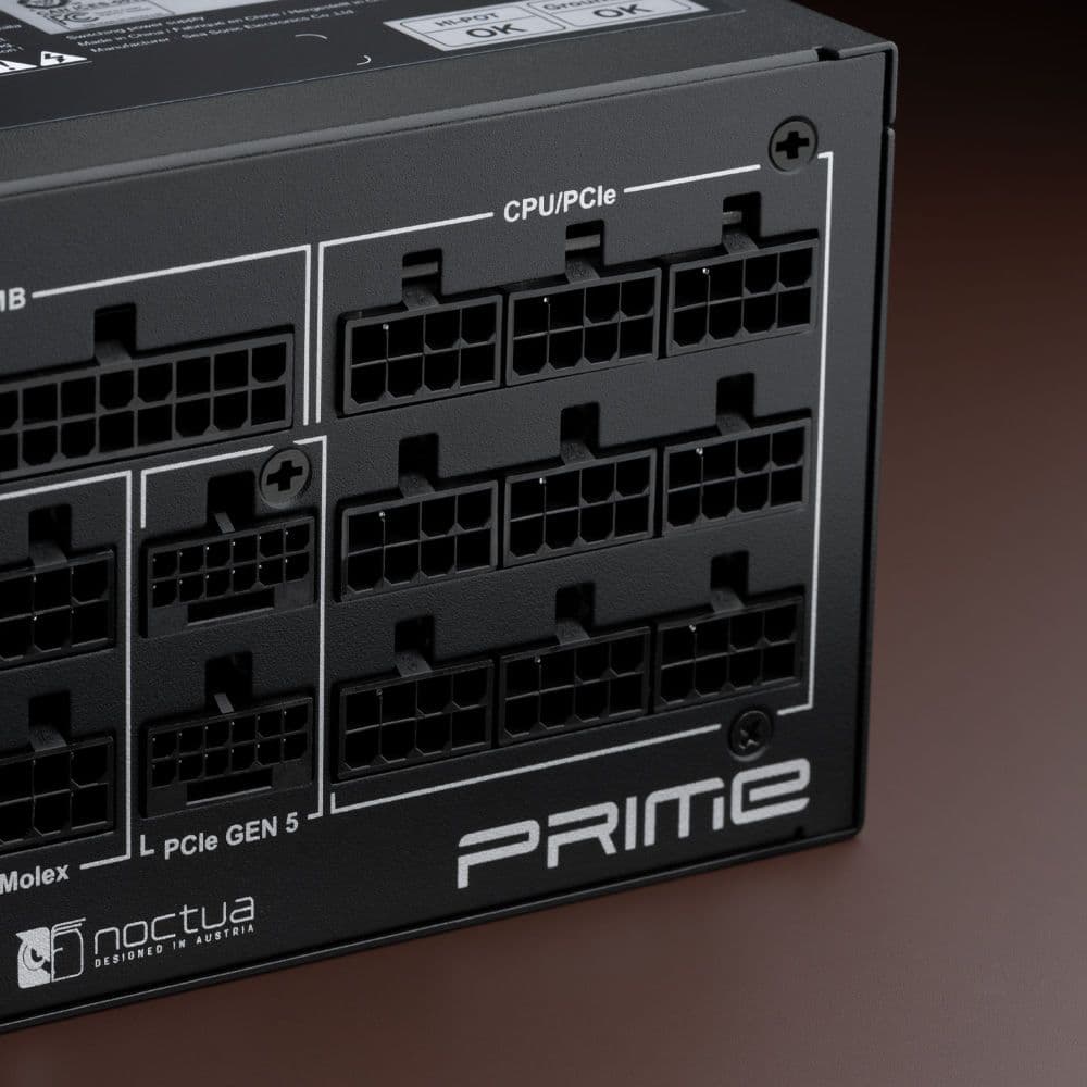 In Cybenetics acoustic tests, the regular PRIME TX-1600 model was already very quiet with a Lambda A rating and an average noise output of only ~21 dB(A). The Noctua Edition further improved on this excellent result with a further ~8 dB(A) reduction and an average noise level of ~13 dB(A), which led to an upgrade from Lambda A to a Lambda A++ classification.