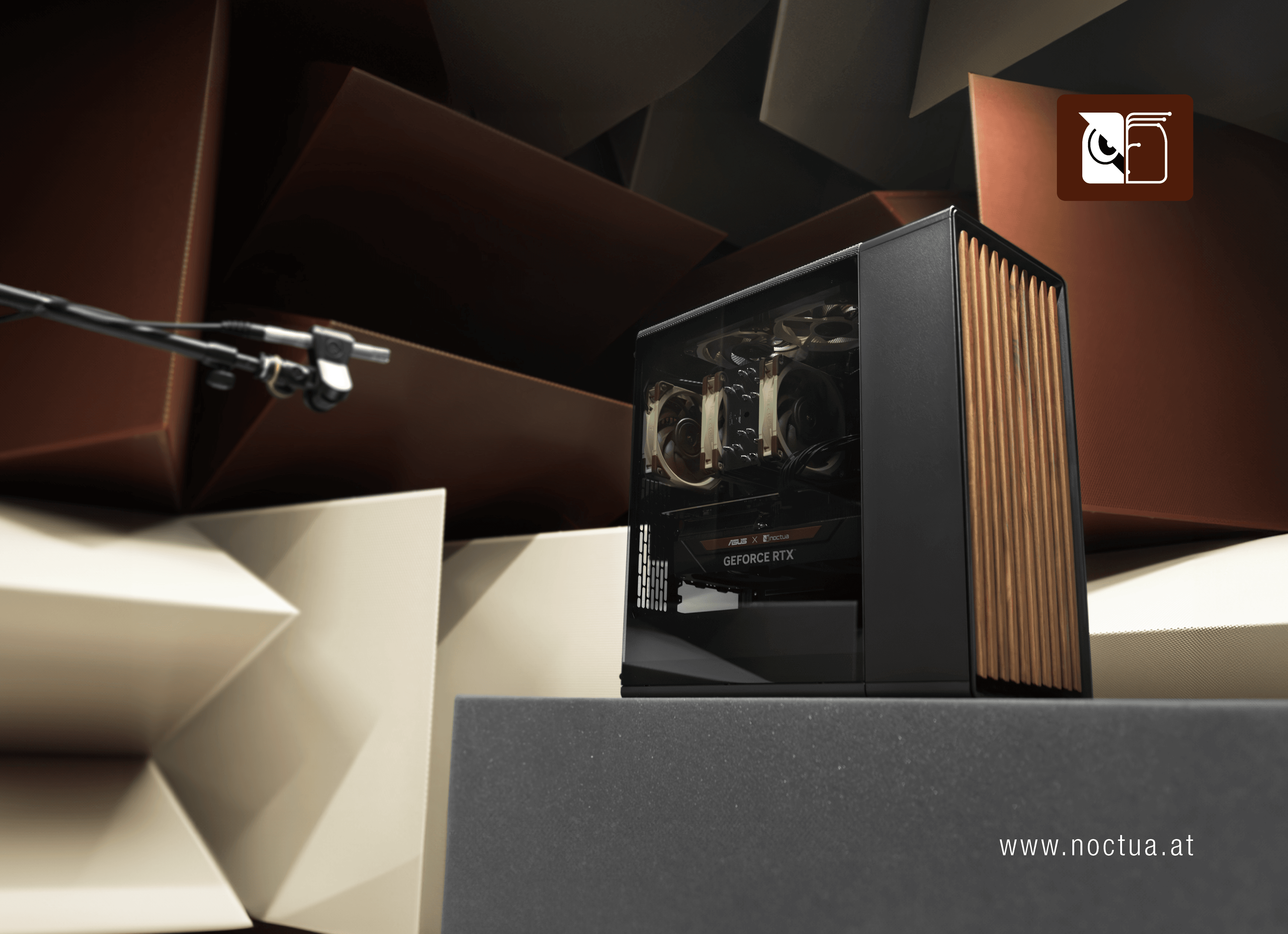 Fractal Design’s North case and our NF-A12x25 fans are a great match not just visually but also from a performance point of view: You can gain a lot by replacing the two pre-installed front fans with three NF-A12x25 fans already, or, if you want to achieve the best possible performance-to-noise-efficiency, we highly recommend the configuration with six NF-A12x25 fans and an NA-IS1-12 intake spacer as described above.
