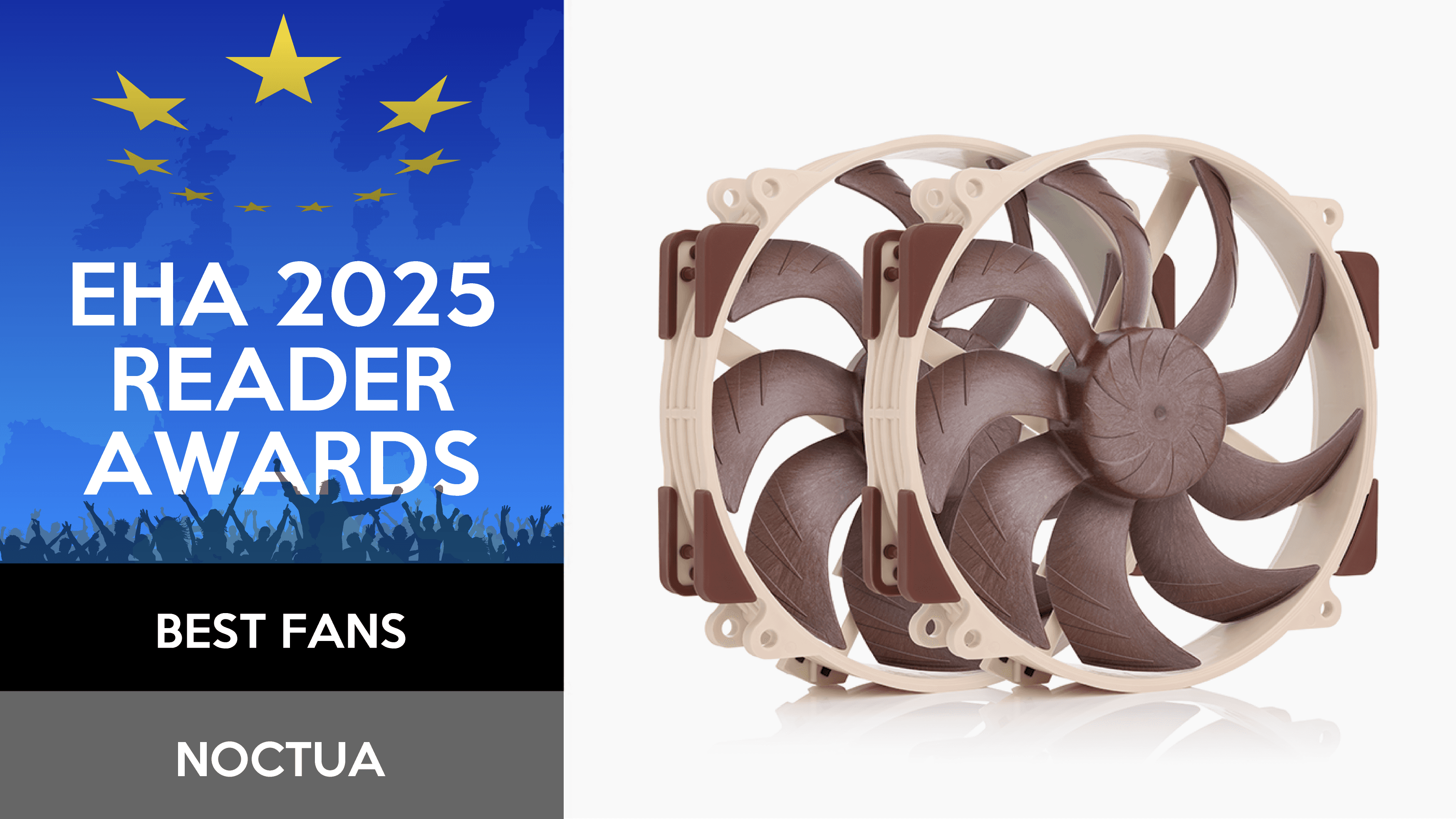 What an anniversary! Noctua has received the European Hardware Association (EHA) Reader Awards for both the best fans and the best CPU coolers for the fifth year in a row. Thank you so much to everyone who voted, your appreciation means the world to us!