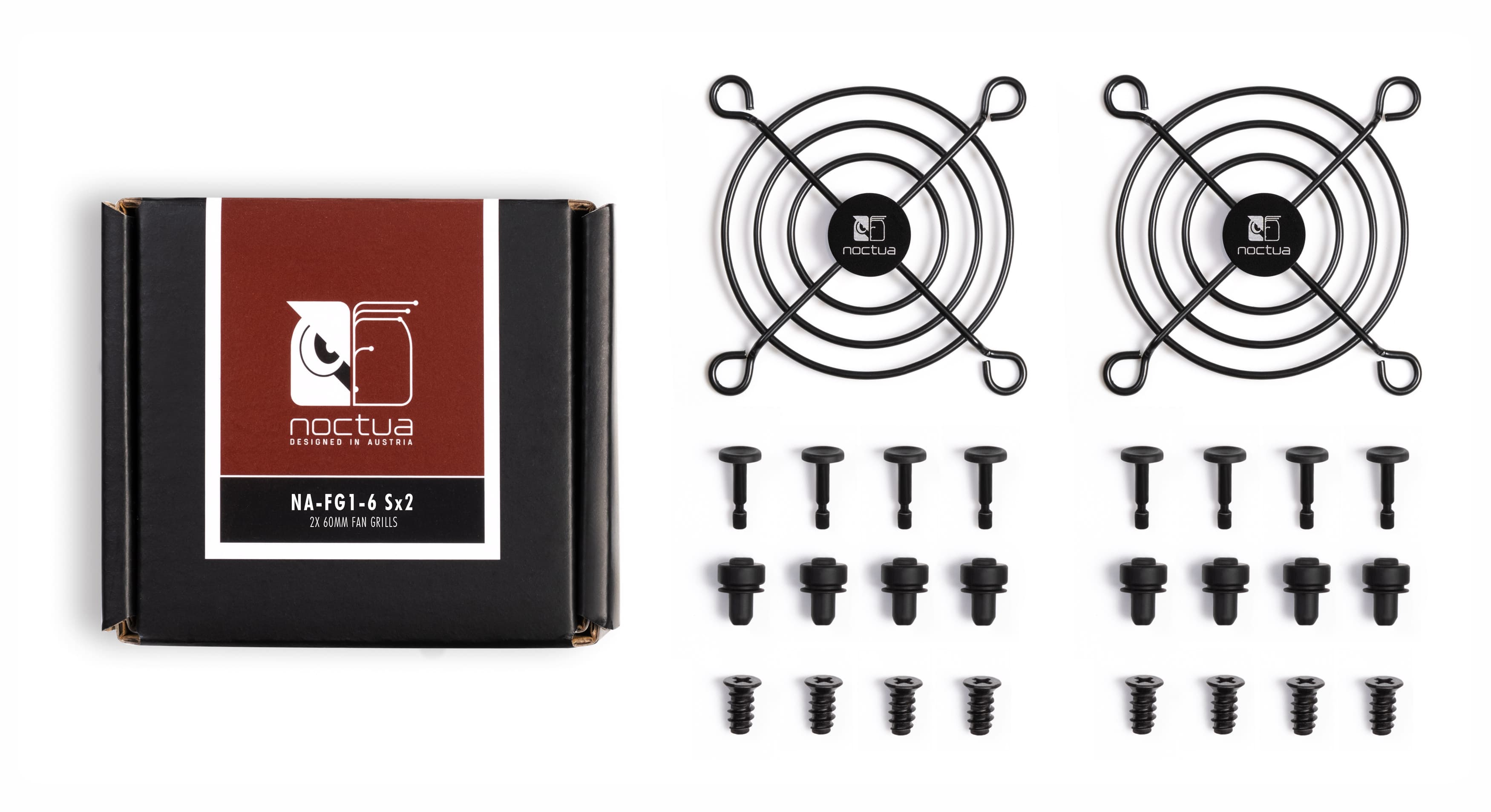 The NA-FG1 sets include a proprietary push-pin mounting system that makes installing the grills a breeze: Push the rubber plugs into the fan’s mounting holes, put on the grill and fix it by pushing in the plastic pins. No screwdriver or other tools required!