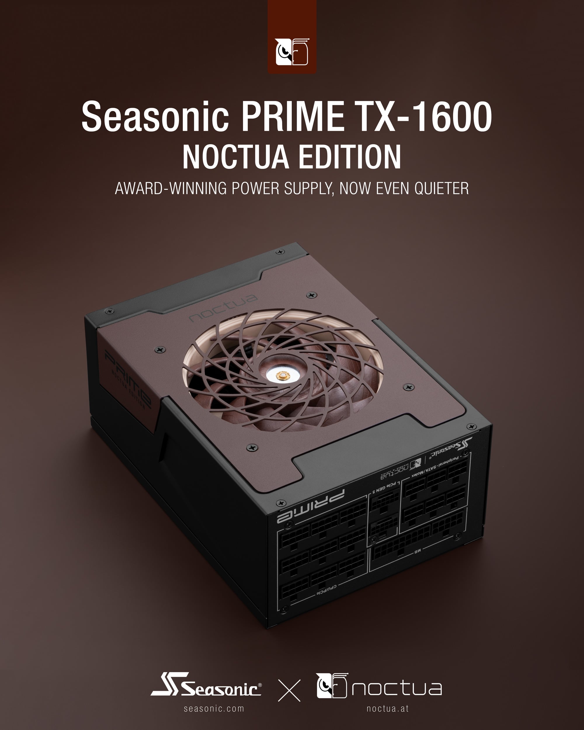 The Seasonic PRIME TX-1600 Noctua Edition is available as of today via Noctua’s official Amazon stores. Other sales partners will receive stock shortly.