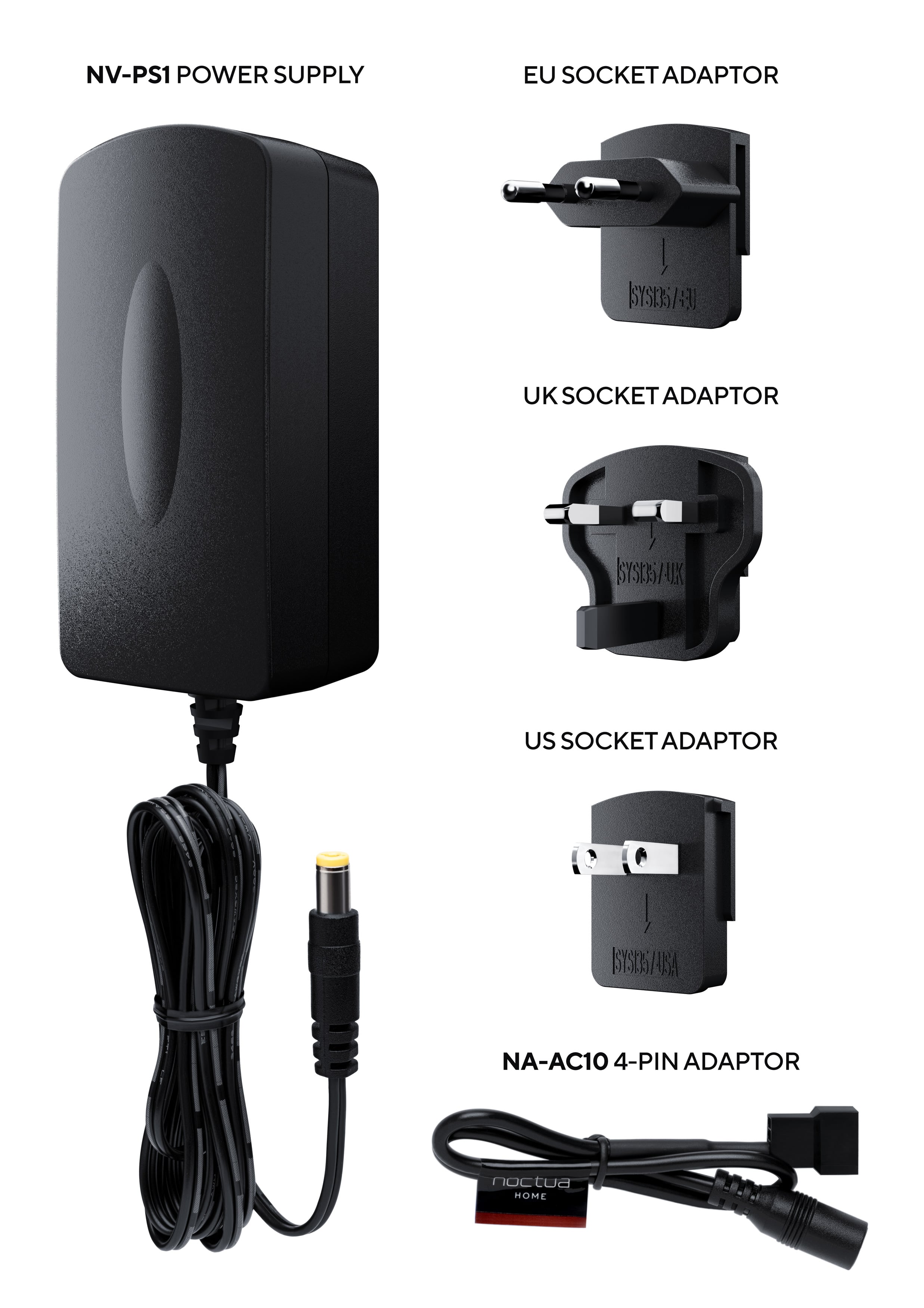 With plug adaptors for EU, US and UK sockets