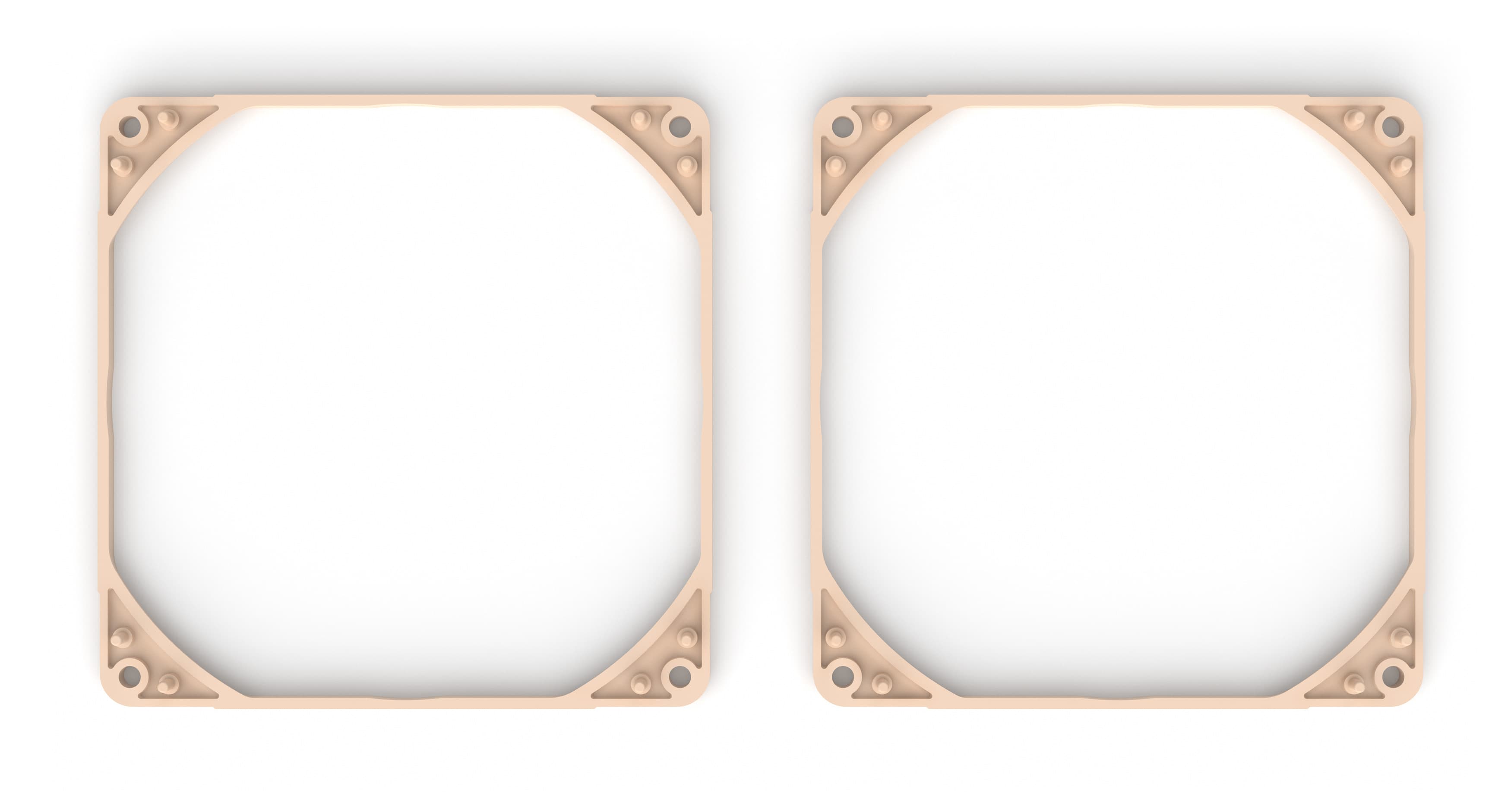 The NA-IS1-14 Sx2 is a set of two 5mm thick intake side spacer frames for Noctua 140x25mm fans that can help to improve both acoustics and performance in suction or “pull” type applications where the fan draws air through obstacles such as grills, perforated plates, mesh panels, filters or radiators. By offsetting the fan from the obstacle, the NA-IS1 inlet spacer reduces influx turbulences, which can, depending on the application and fan model, not only improve airflow but also significantly reduce overall noise levels and make the fan sound more pleasant to the ear. Designed to replace the fan’s stock NA-AVP1 anti-vibration pads, the NA-IS1-14 are compatible with all current square-frame Noctua 140x25mm fans and extremely straightforward to install: For case fan applications, either the supplied self-tapping screws or the included NA-AV3 anti-vibration mounts can be used to sandwich the spacer between the fan and the case panel. For radiator mounting, both M3 and UNC 6-32 screws are supplied. In sum, the NA-IS1-14 Sx2 set is a simple yet highly effective fine-tuning measure for suction type applications where a reduction of influx turbulence can lead to improved airflow and acoustics.
