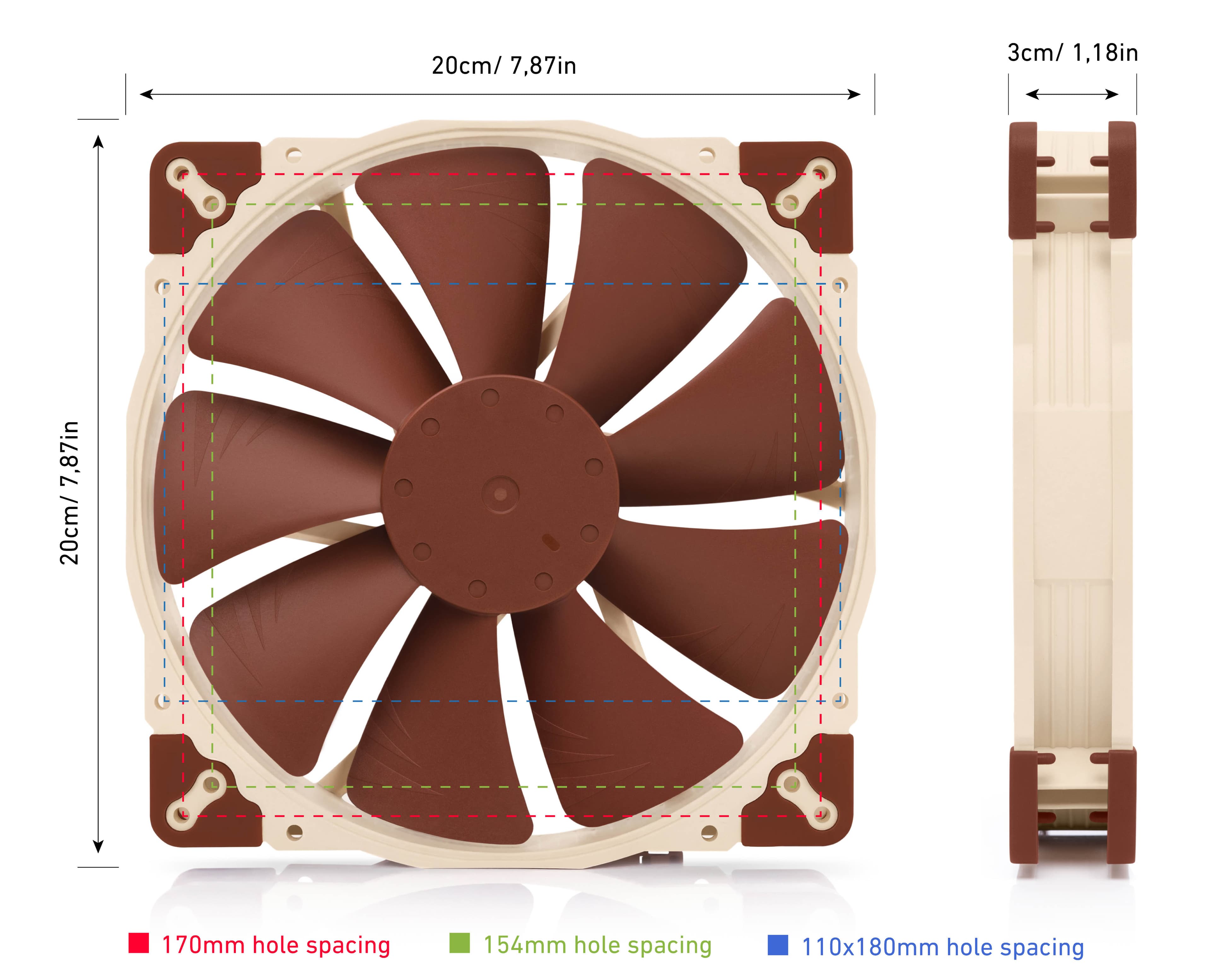 The NF-A20 features the further optimised second generation of Noctua's renowned, time-tested SSO bearing. With SSO2, the rear magnet is placed closer to the axis to provide even better stabilisation, precision and durability.