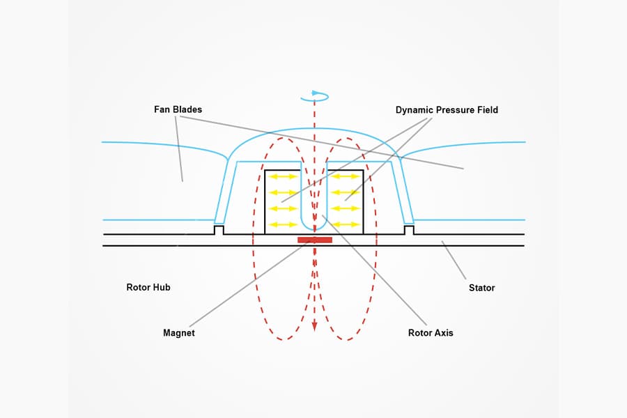 Noctua’s SSO bearing uses dynamic oil pressure and a stabilising magnet for quiet, long-lasting performance.