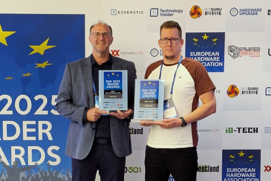 Noctua has received the 2025 European Hardware Association (EHA) Reader Awards for both the best fans and the best CPU coolers for the fifth year in a row.