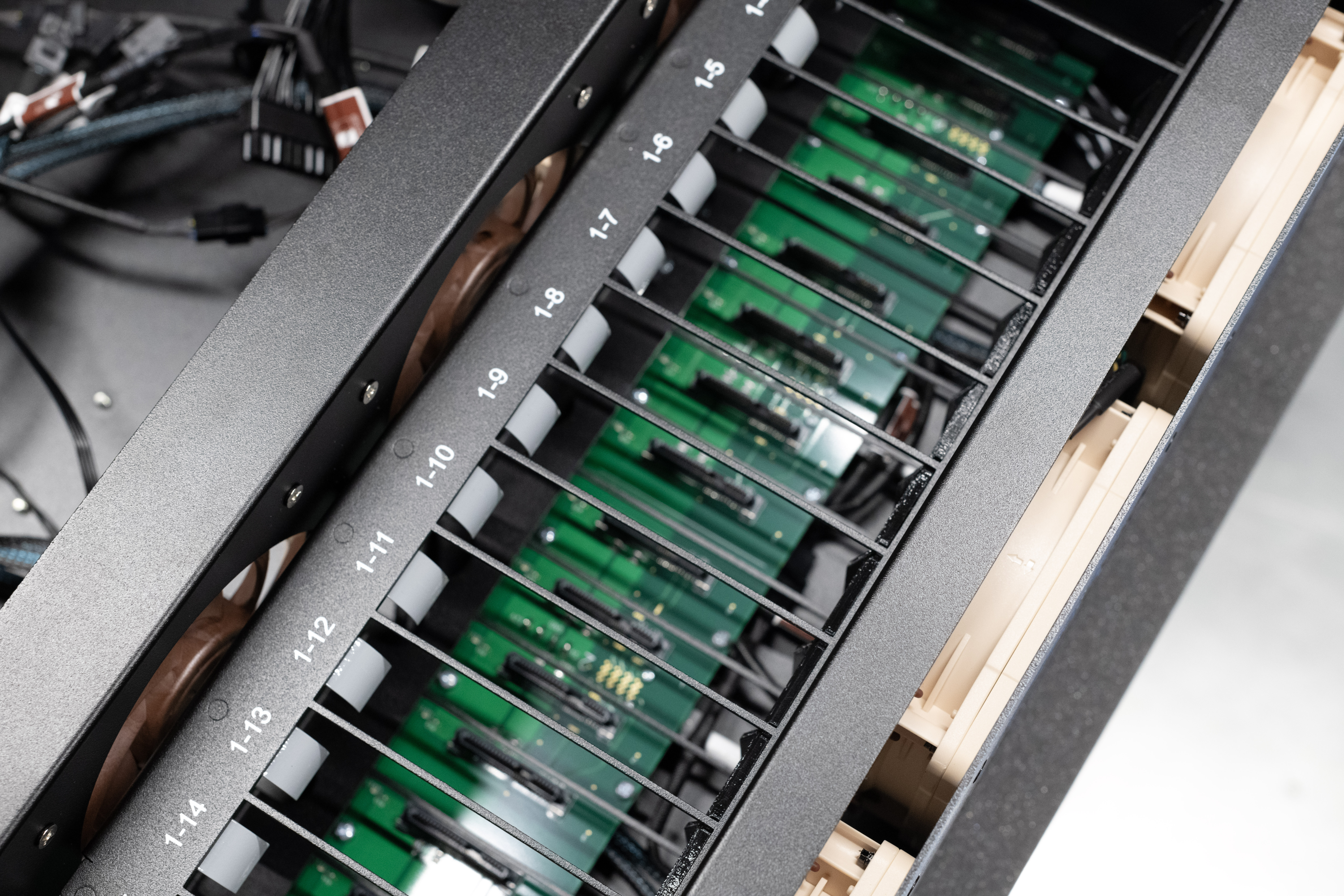 Whether you want to build a high-end storage server that requires maximum cooling performance or a homelab that needs to operate at minimum noise levels: The Noctua fan configuration provides state-of-the-art performance to noise efficiency and gives you all the flexibility to fine-tune your setup for near-silent operation or ultimate airflow.