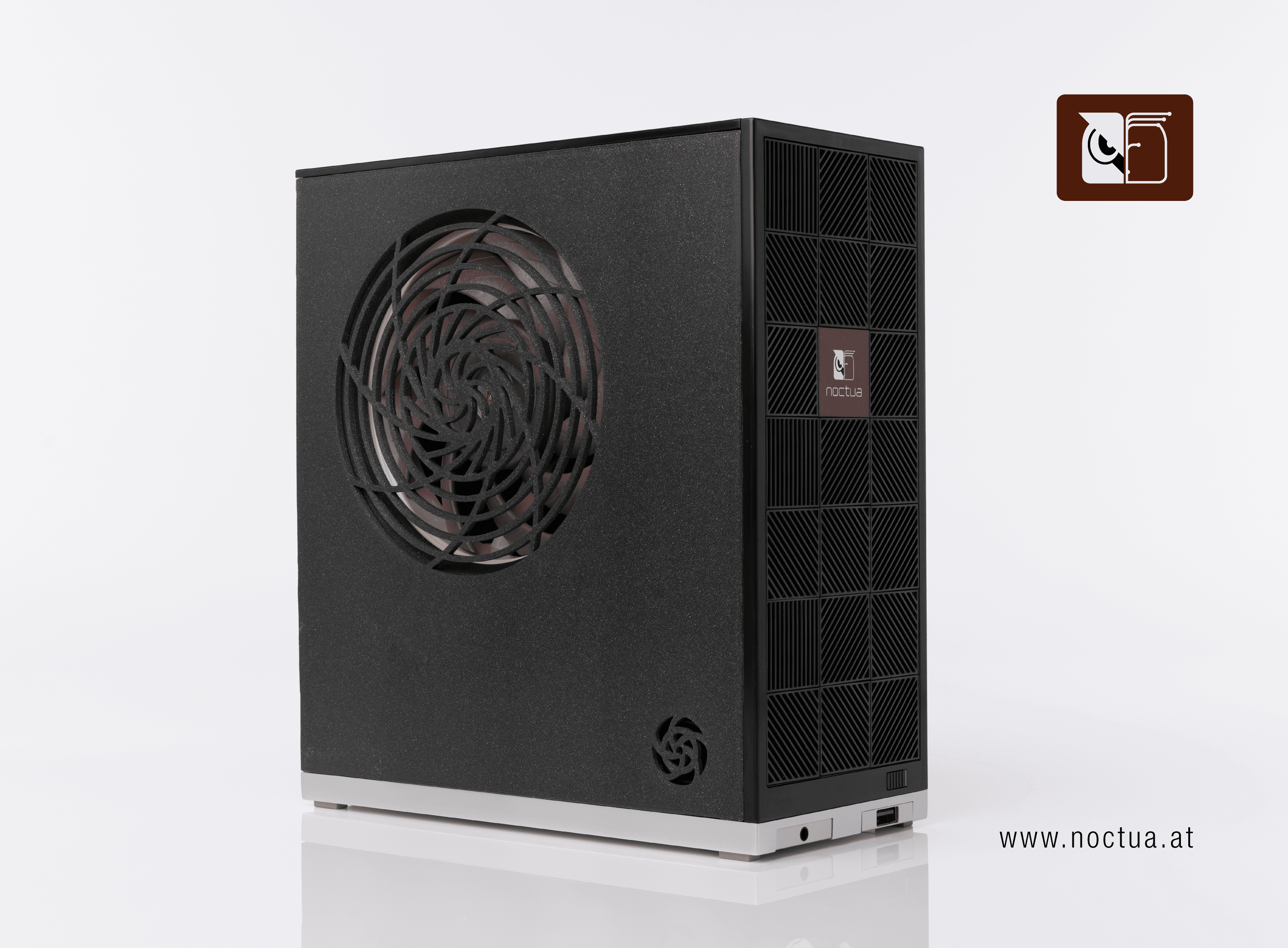 - Custom side panel with Noctua-style fan grill