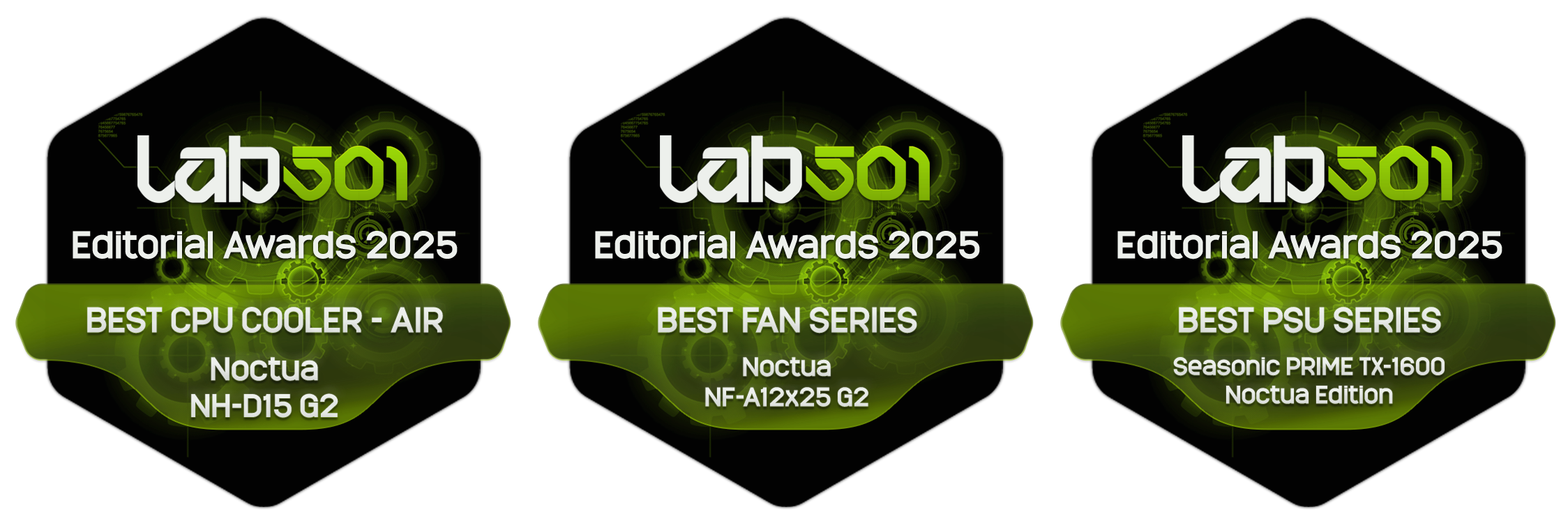 We’re delighted to announce that Noctua has been honoured by LAB501 – one of Europe’s most respected hardware publications – clinching Best CPU Cooler, Best Fan, and Best Power Supply in their inaugural LAB501 Editorial Awards 2025.