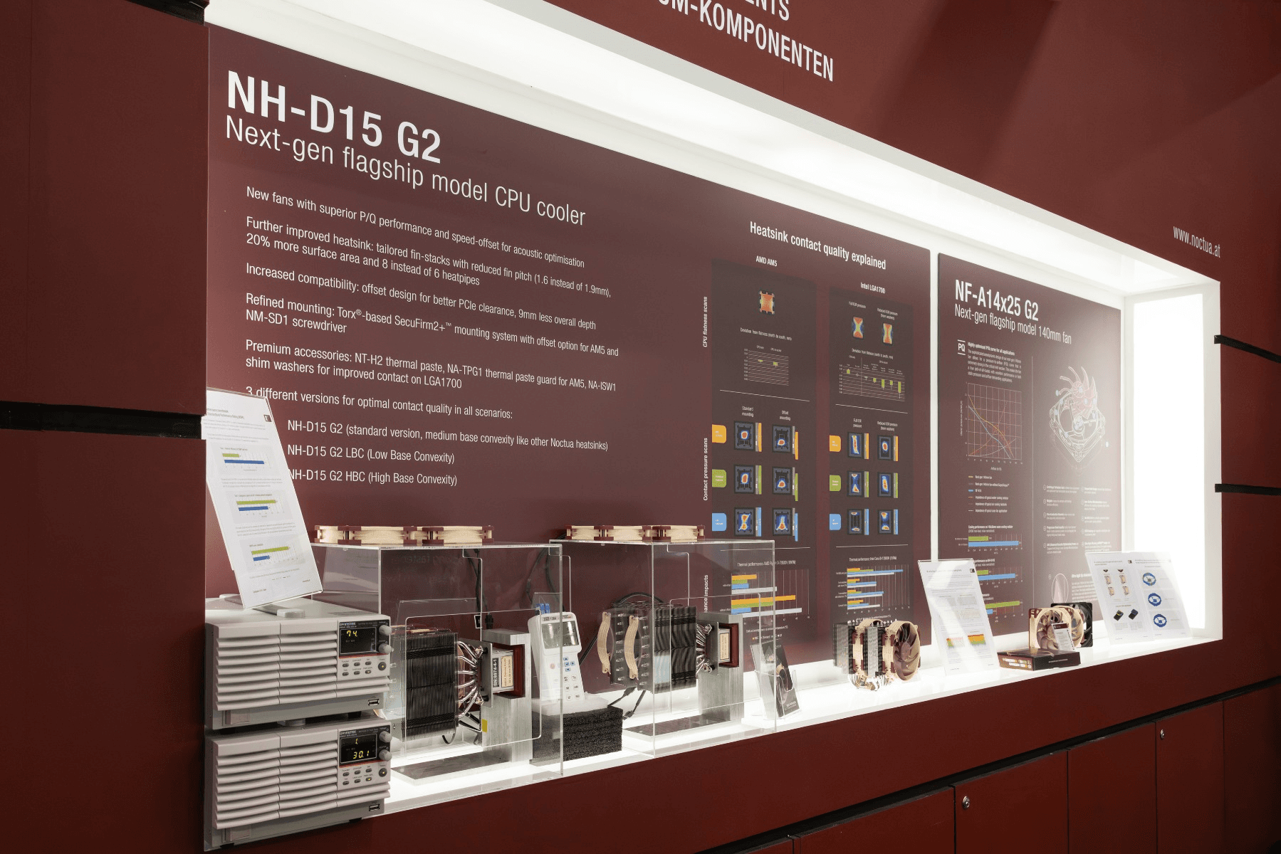 Vienna, June 18th 2024 – At this year’s Computex Taipei trade show, Noctua displayed a wide range of upcoming products and prototypes, including the Seasonic Prime TX-1600 Noctua Edition power supply, a two-phase thermosiphon cooling solution with flexible tubing as well as the upcoming second generation of the award-winning NF-A12x25 fan. The exhibition also included final versions of the NF-A14x25 G2 fan that’s coming up in September as well as the soon-to-be launched NH-D15 G2 flagship model CPU cooler.