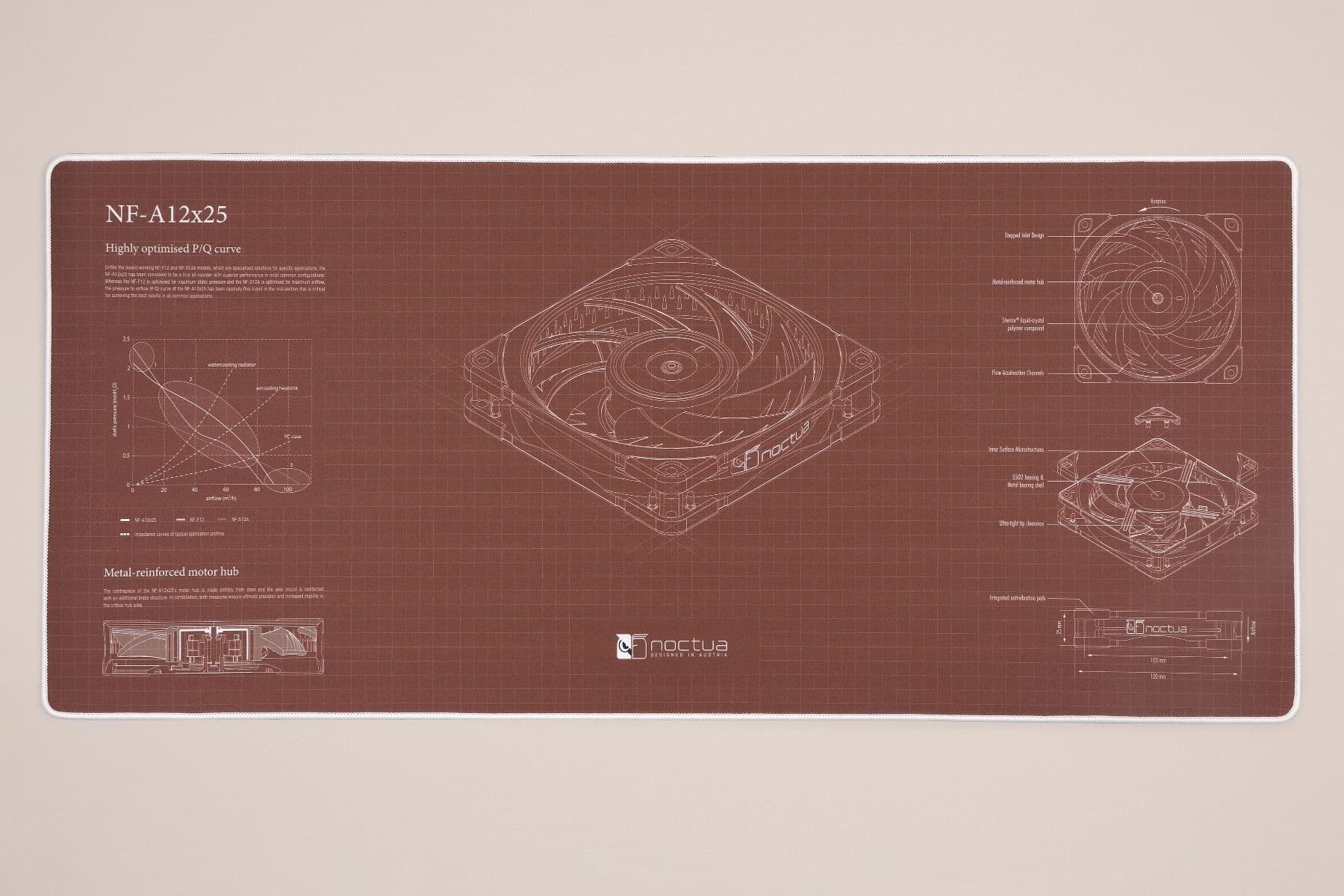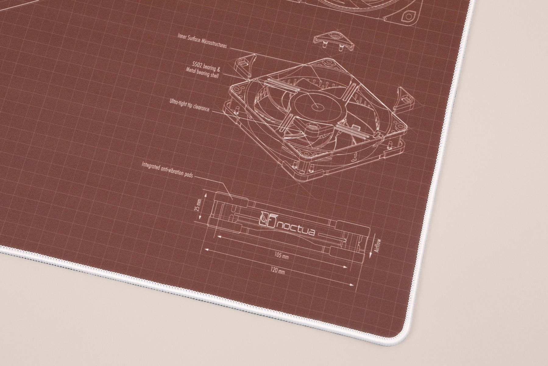 The Noctua Desk Mat comes in two different styles, both with that classic, warm Noctua brown at their core. The simpler design features subtle grid lines - perfect for those who are constantly tinkering on their desk. There’s also the Blueprint-style Noctua cooling fan design - perfect for big fans of Noctua’s fans. No matter which mat you choose, you can be sure that the build quality is in keeping with the Noctua name. Each Noctua Desk Mat has a high-density, low-friction mercerized fabric topper for excellent feel, while the wave-structured, eco-friendly rubber of the base will keep things stable and stationary. The mats are four millimeters thick for just the right amount of padding - plus thanks to water-repellant properties and stitched edges, they are guaranteed to offer the same long-lasting quality that Noctua components are known for.