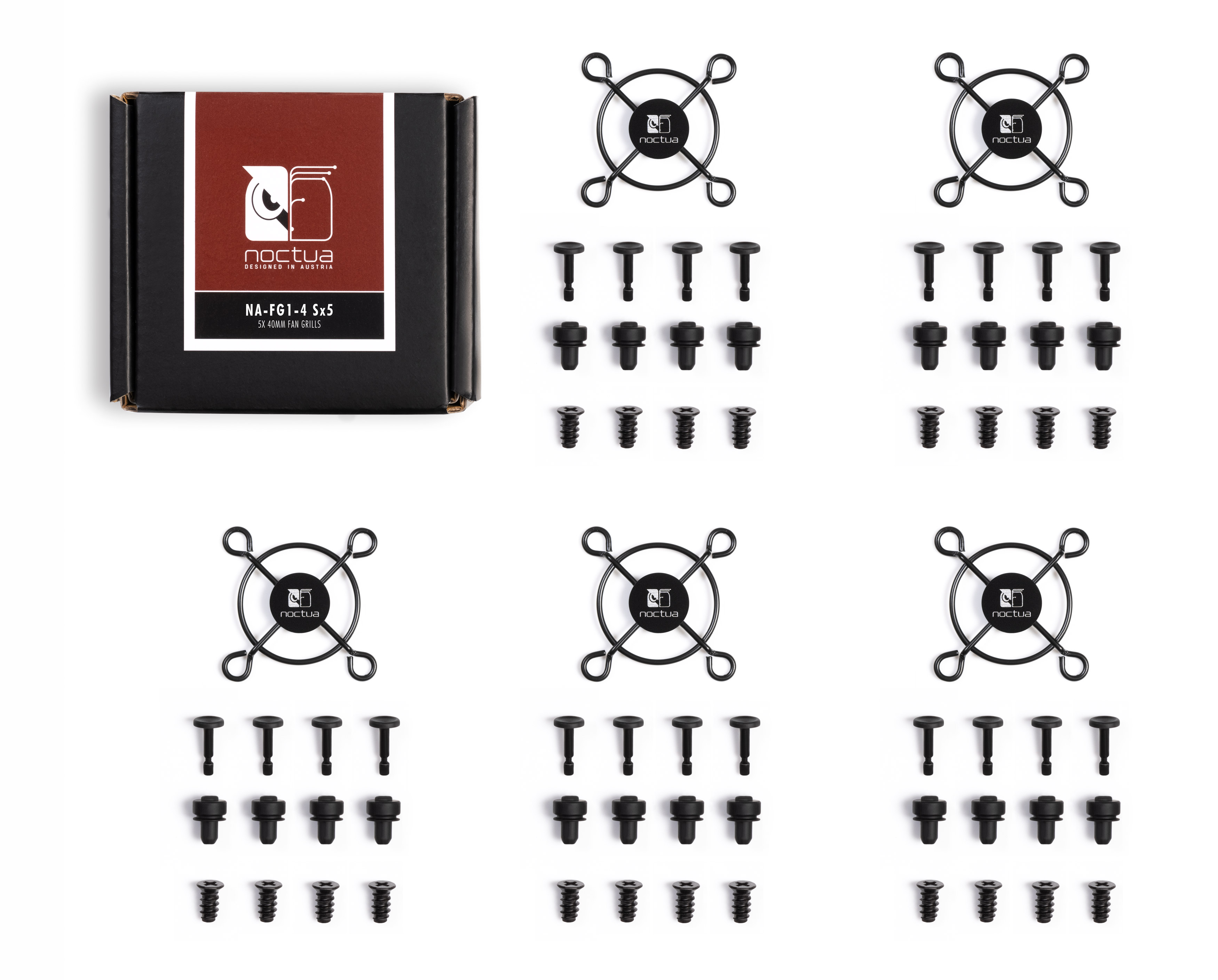 The NA-FG1 sets include a proprietary push-pin mounting system that makes installing the grills a breeze: Push the rubber plugs into the fan’s mounting holes, put on the grill and fix it by pushing in the plastic pins. No screwdriver or other tools required!