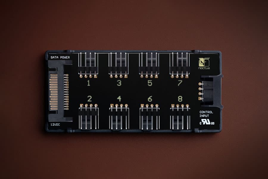 Supporting both 12V and 5V (4-pin power input only) operation, the NA-FH1 not only works great with 12V PC fans, but is also an elegant solution for running multiple Noctua 5V fans, many of which include USB adaptor cables that can be used to connect the NA-FH1 to mobile phone power supplies or power banks.