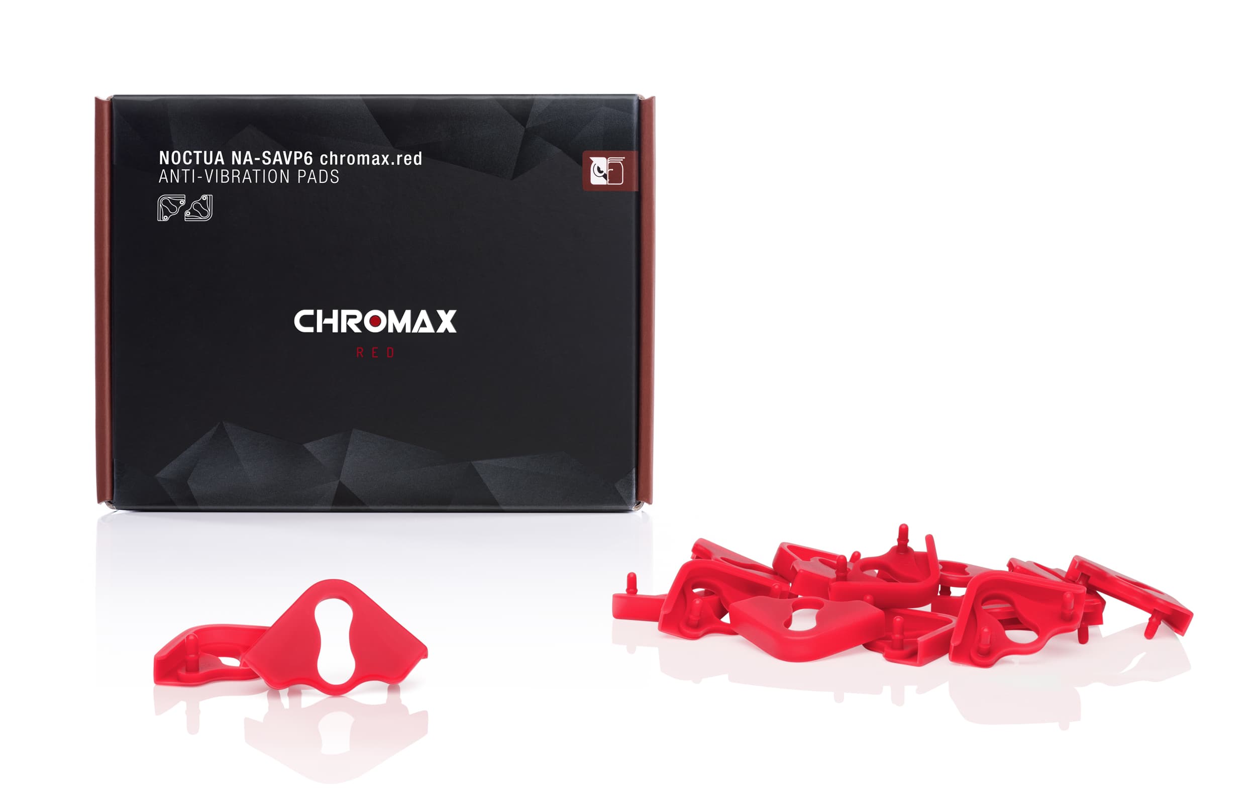 The NA-SAVP6 chromax.red is a fan accessory set consisting of 16 red NA-AVP6 anti-vibration pads for up to 2 compatible 200mm fans (see compatibility info). Made from extra-soft silicone, the NA-AVP6 pads minimise the transmission of minute vibrations while maintaining full compatibility with standard fan screws and most other mounting systems. At the same time, the chromax.red edition is ideal for adding red accents to Noctua’s chromax line fans in order to colour-coordinate them with individual build themes.