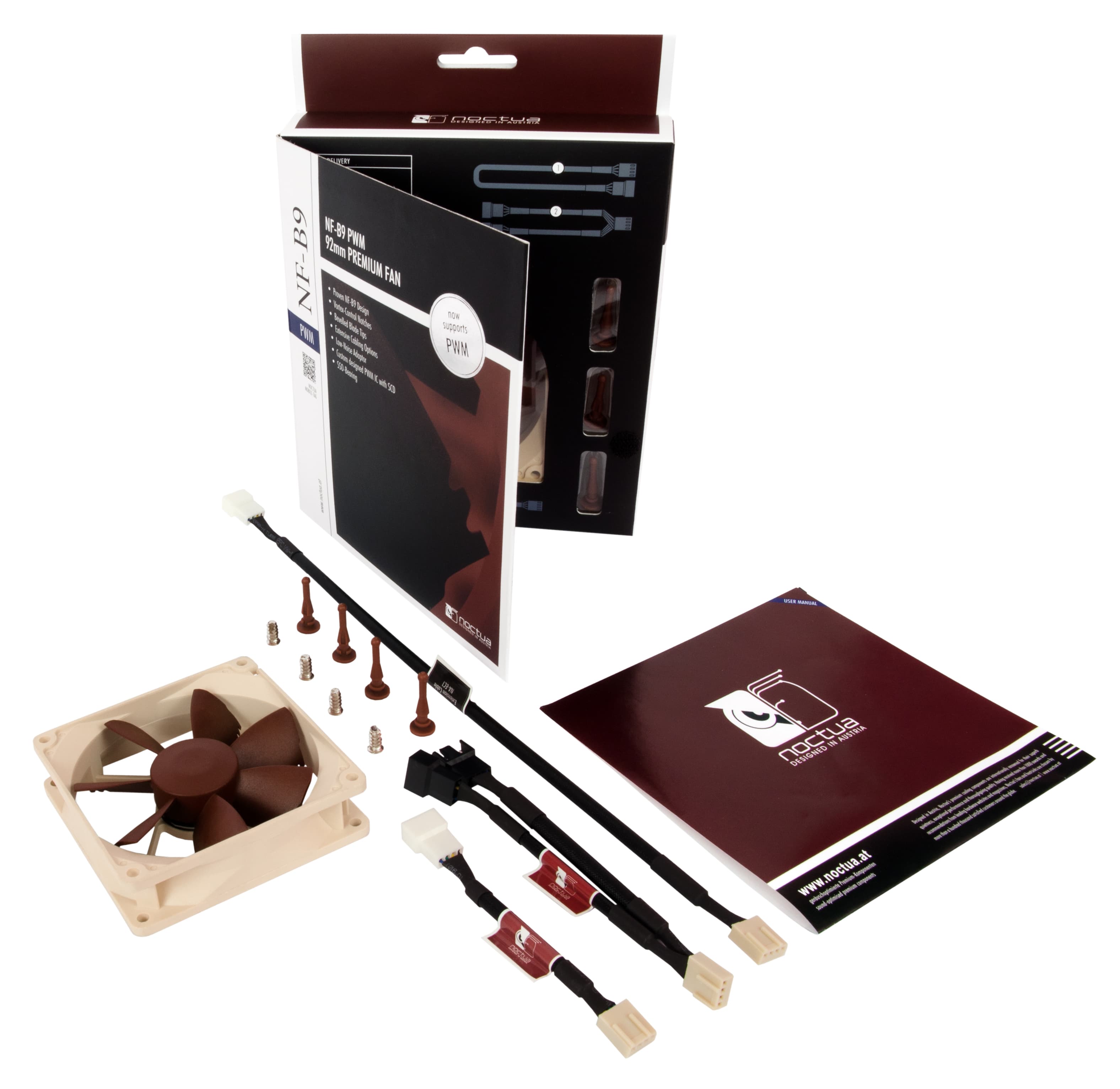 The classic NF-B9 92mm fan helped to found Noctua’s reputation as a top-tier manufacturer of premium quality quiet cooling components and still impresses users with its exquisite quietness and superb performance. The new PWM version features Noctua’s novel, custom designed PWM IC for fully automatic control and ultra-low power consumption. Equipped with Noctua’s signature SSO-Bearing and topped off with a 6 years manufacturer’s warranty, the NF-B9 PWM is a proven premium choice for the highest demands.