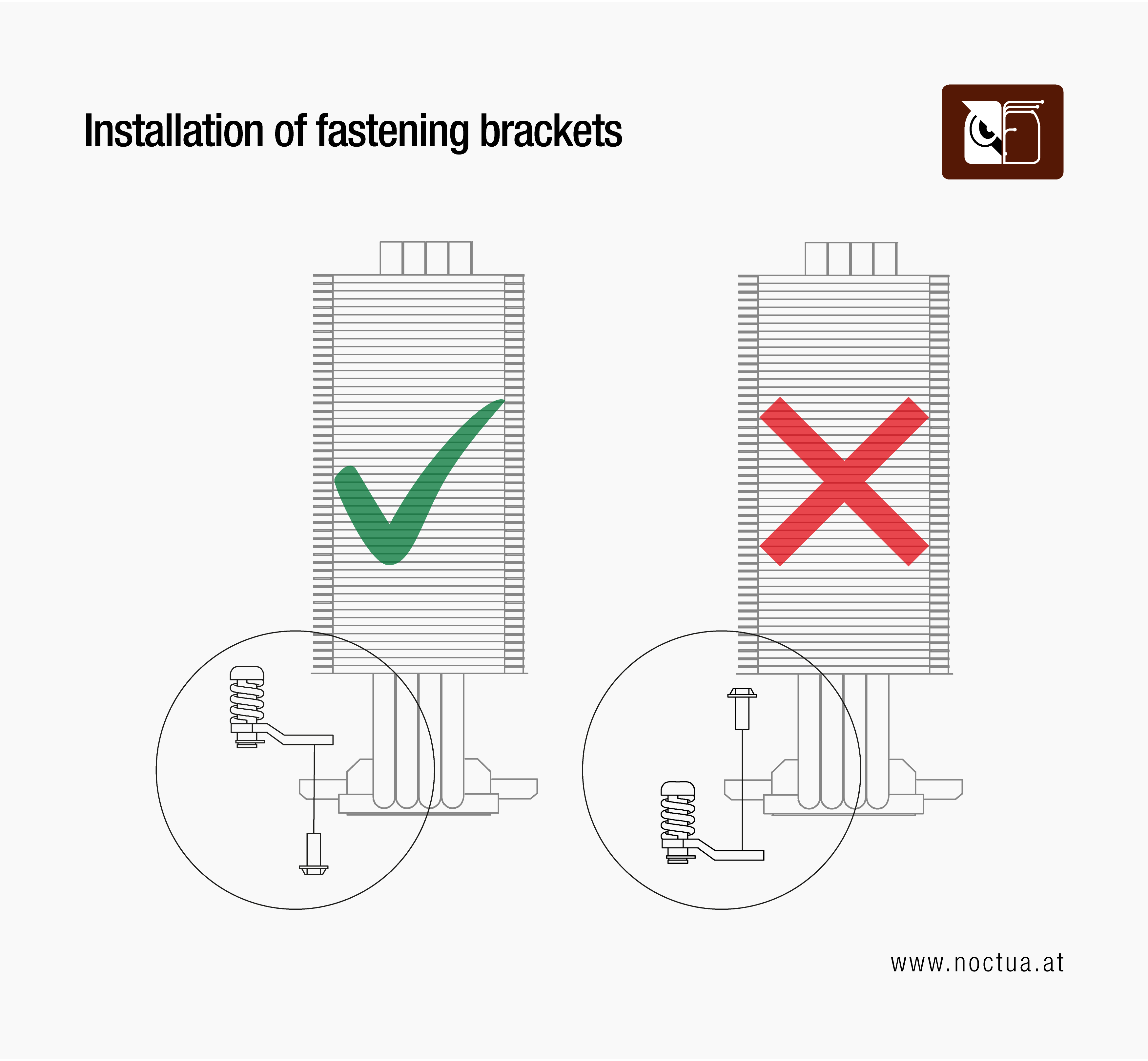 Please proceed to our installation manuals, if you need more detailed instructions on how to install your Noctua CPU cooler onto your motherboard.